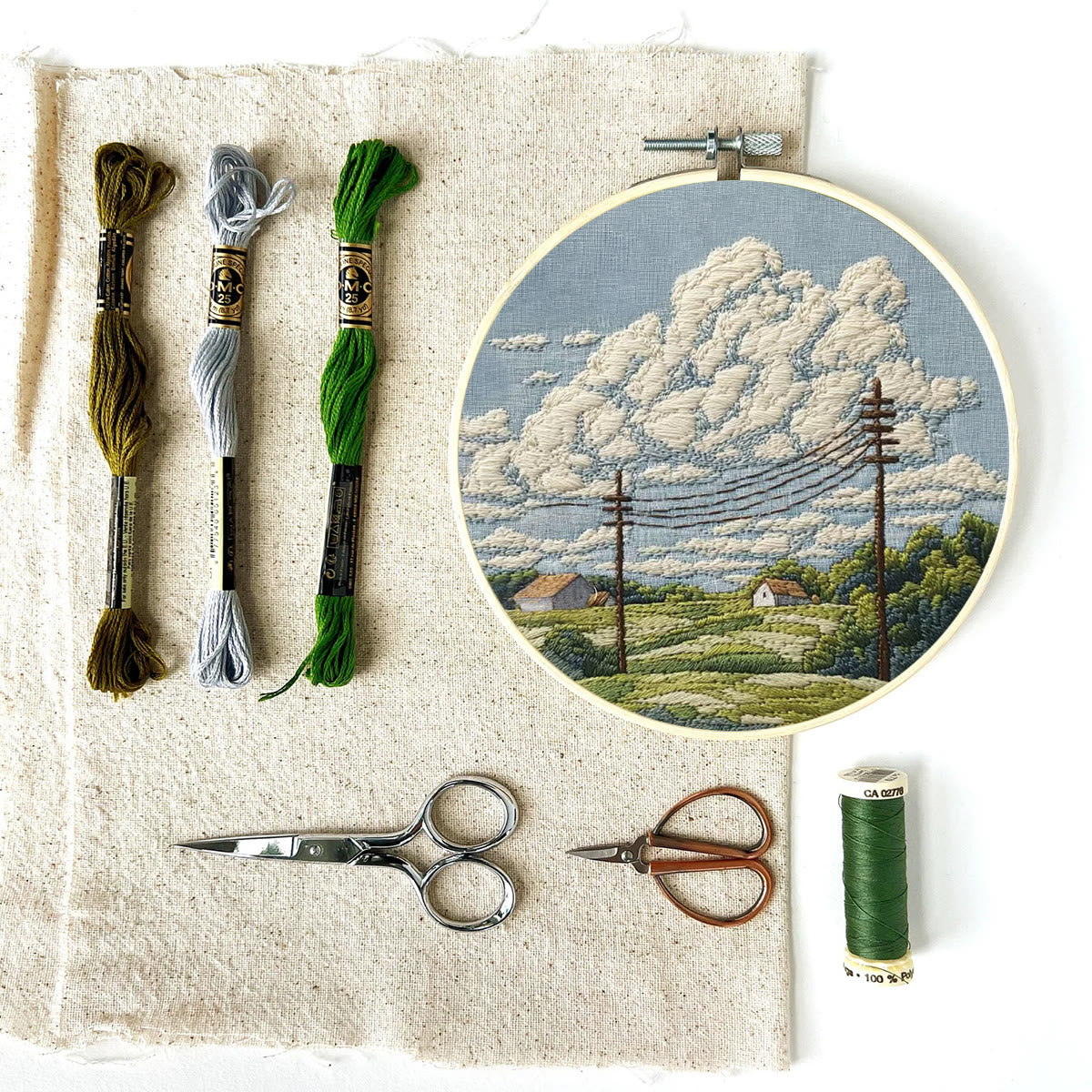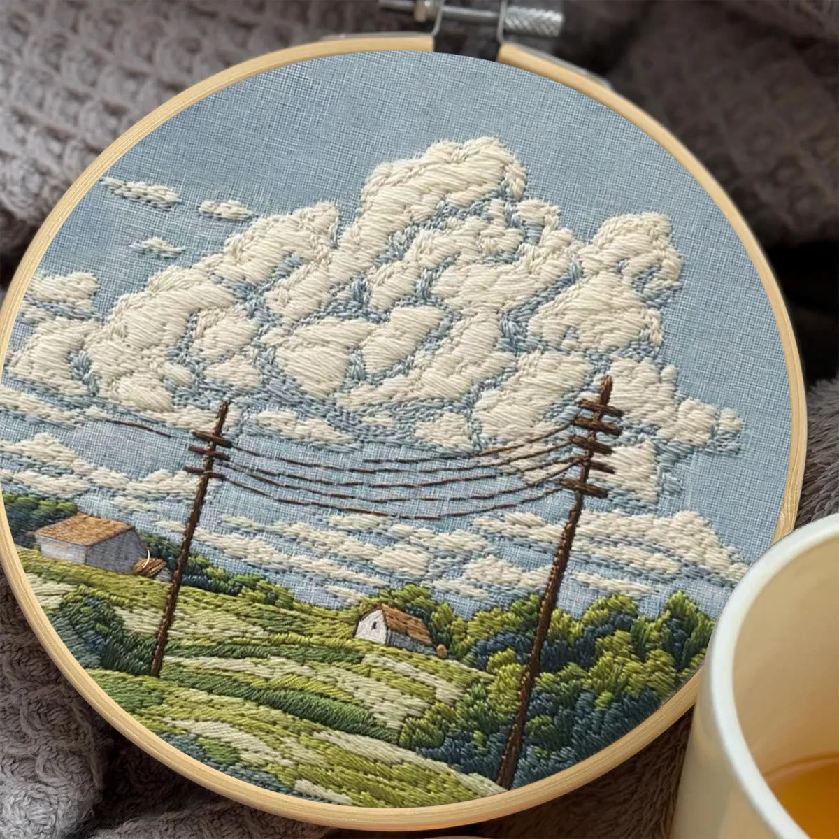 Rubbyoo Embroidery Kit - Rural Cloudscape Scene | Fresh Indoor Hanging Decor | Ideal Gifting Choice
