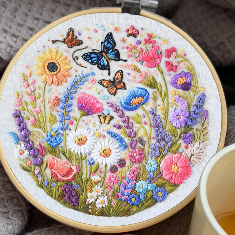 Rubbyoo Embroidery Kit - Beautiful Wildflowers | Floral Hoop Art | Diy Anniversary Craft