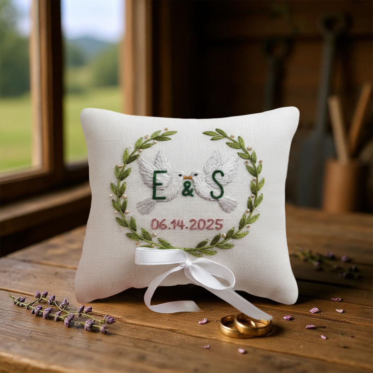 Rubbyoo Personalized Ring Bearer Pillow Embroidery Kit - White Doves Initials Wreath With Date | Gift-giving Top Pick Handcraft | Elegant Decor Pieces