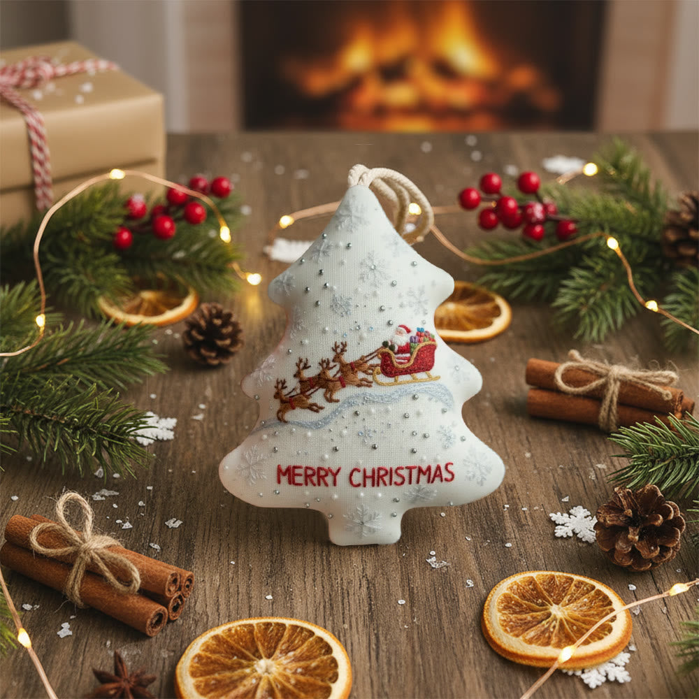 Rubbyoo Tree-shaped Embroidery Kit - Santa’s Sleigh Ride | Whimsical Embroidery Design | Heartwarming Christmas Keepsake