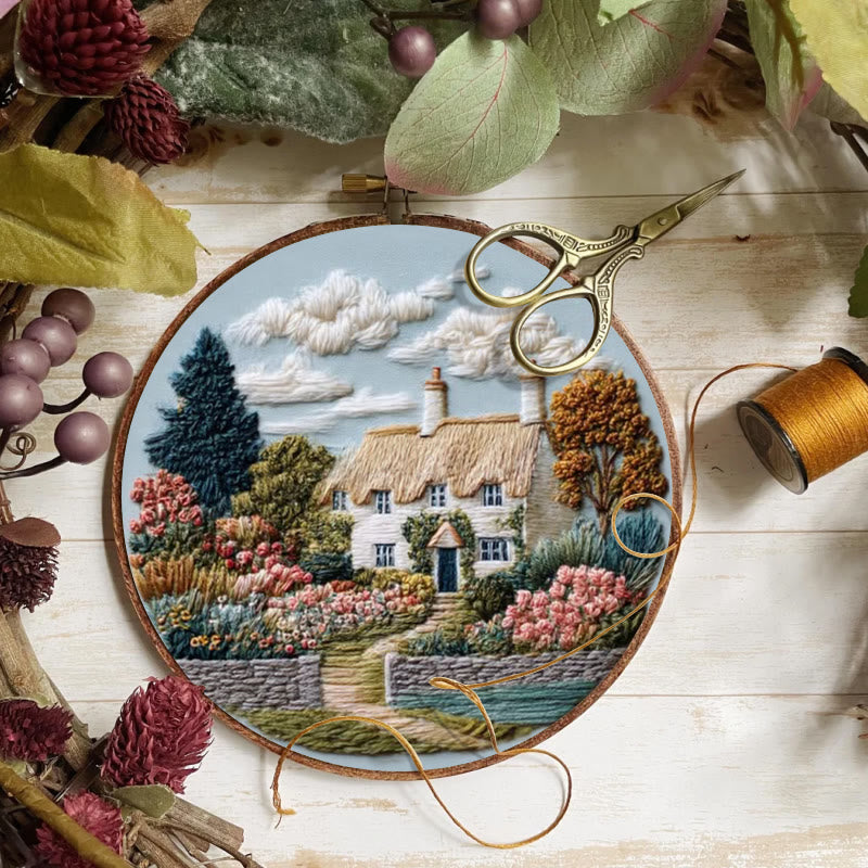 Rubbyoo Embroidery Kit - Beautiful Manor | Decorative Stitch Art | Unique Gift Idea