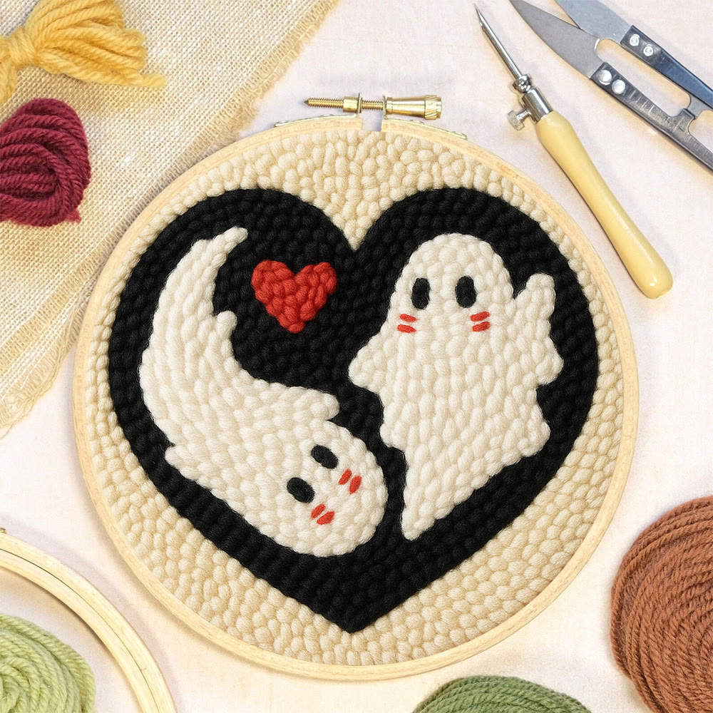 Yin-Yang Ghost Heart Punch Needle Kit – Simple-to-craft DIY Work | Romantic Handcrafted Present
