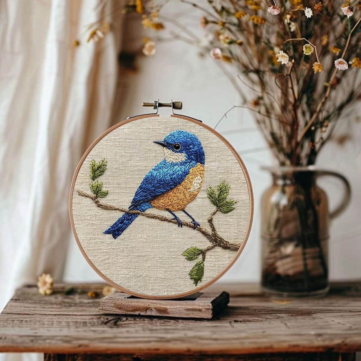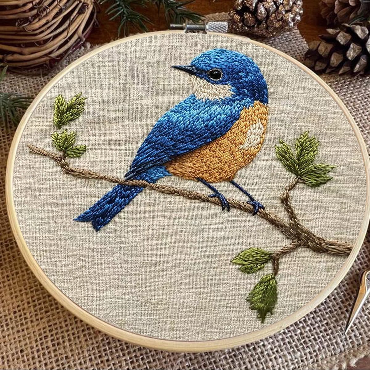 Rubbyoo Embroidery Kit - Blue Bird | Modern Decorative Craft | Personalized Gift For Her