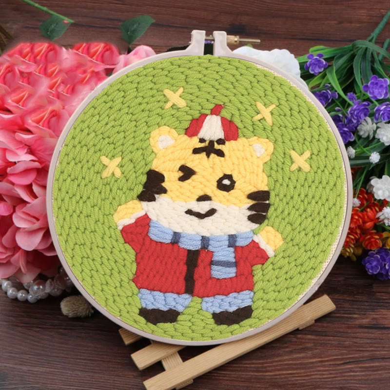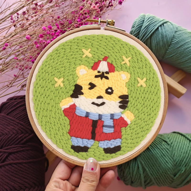 Lucky Tiger Punch Needle Kit - Animal Sewing Set | Starter Needlework Crafts