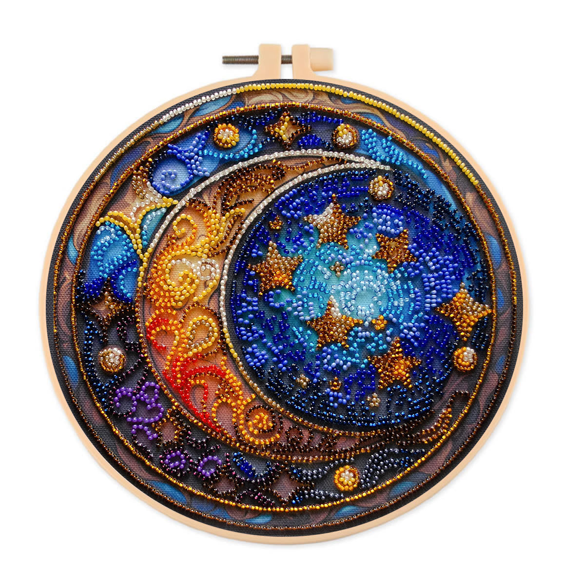 Rubbyoo Bead Embroidery Kit - Moom And Star | Diy Celestial Craft | Unique Celestial Art