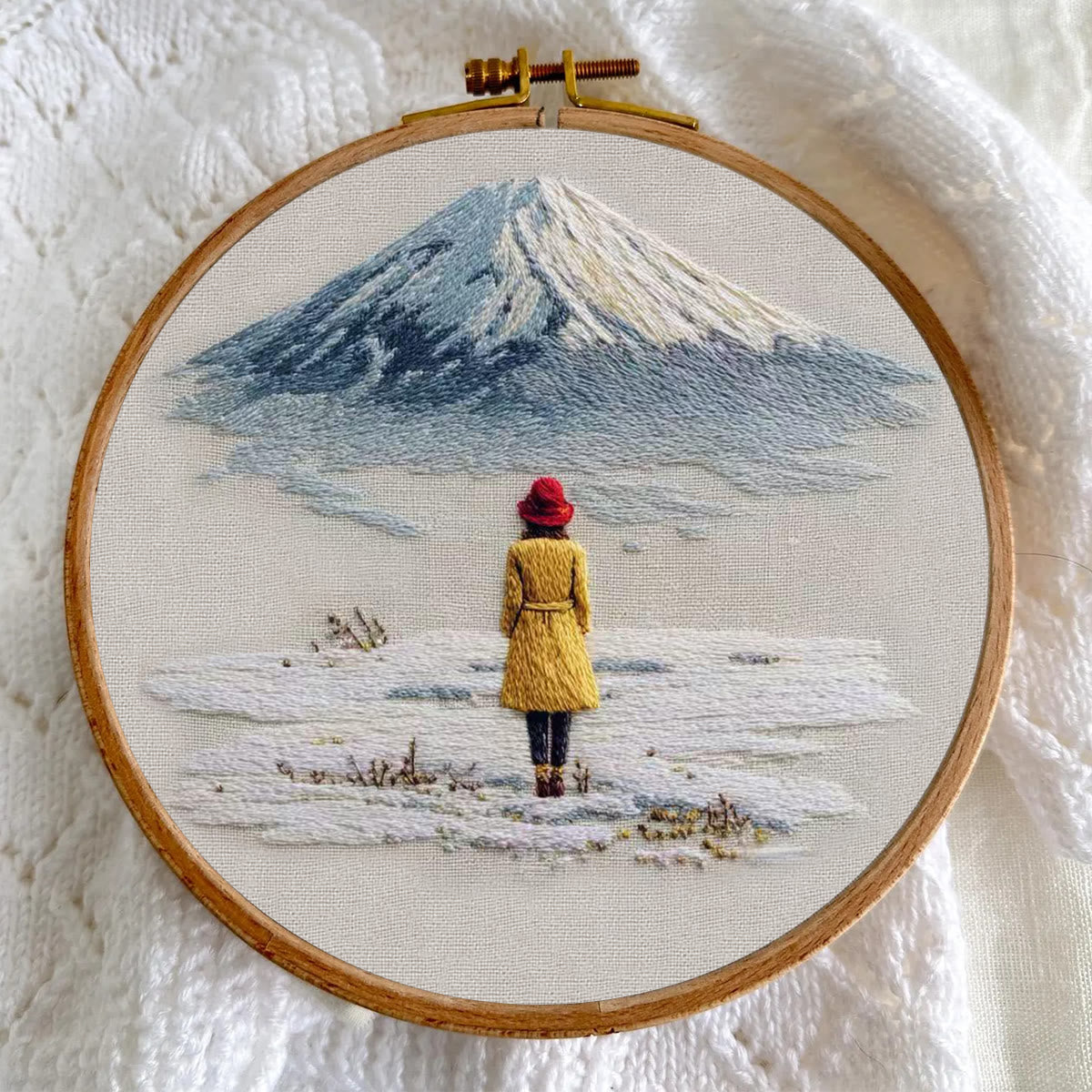 Rubbyoo Embroidery Kit - Snow Mountain | Diy Landscape Craft | Easy Stitch Hoop Art