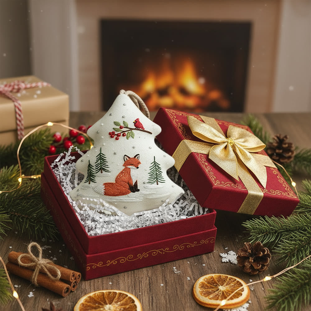 Rubbyoo Tree-shaped Embroidery Kit - Woodland Fox Cardinal | Charming Woodland Stitching | Festive Gifting Decor