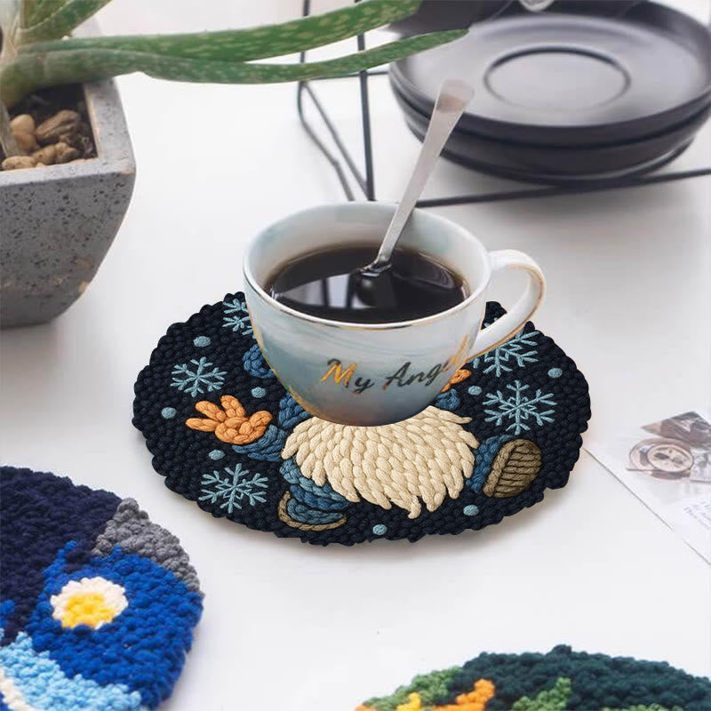 Snowflake Gnome Punch Needle Kit - Creative Winter Handicraft | Christmas Decorative Coaster