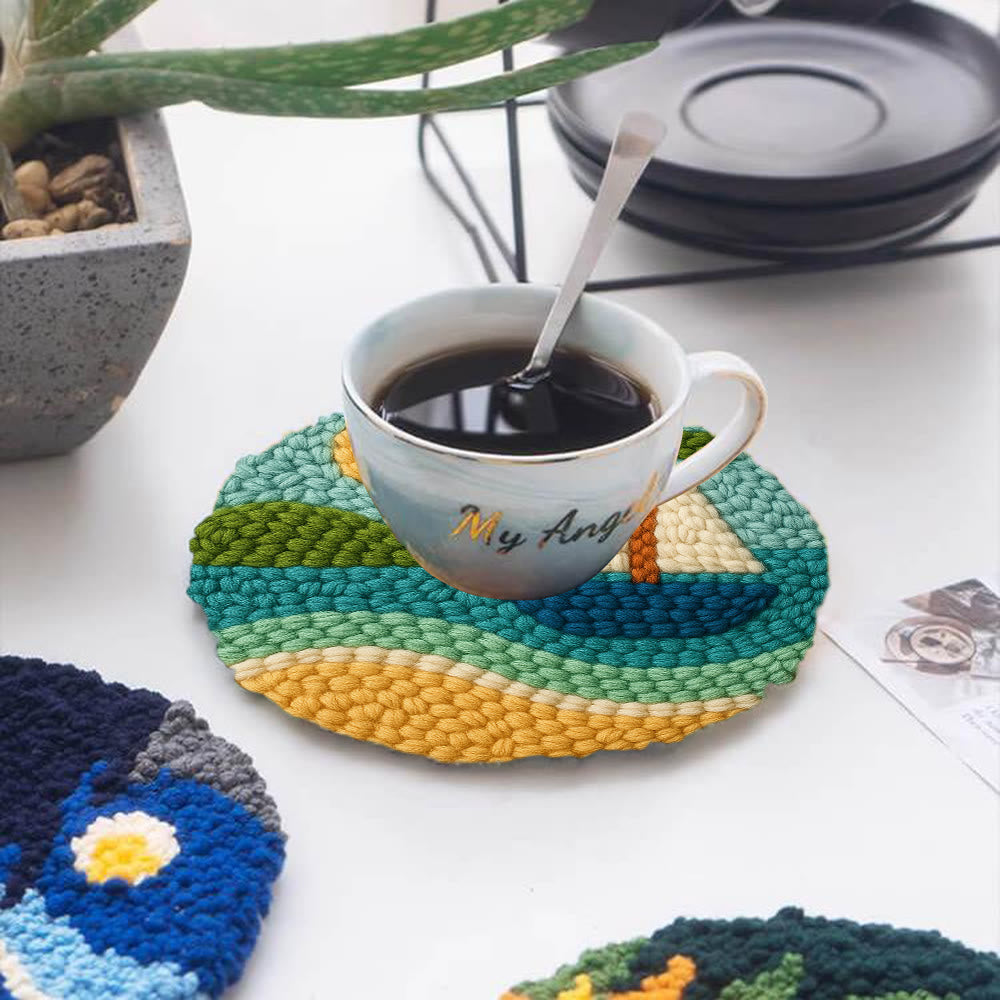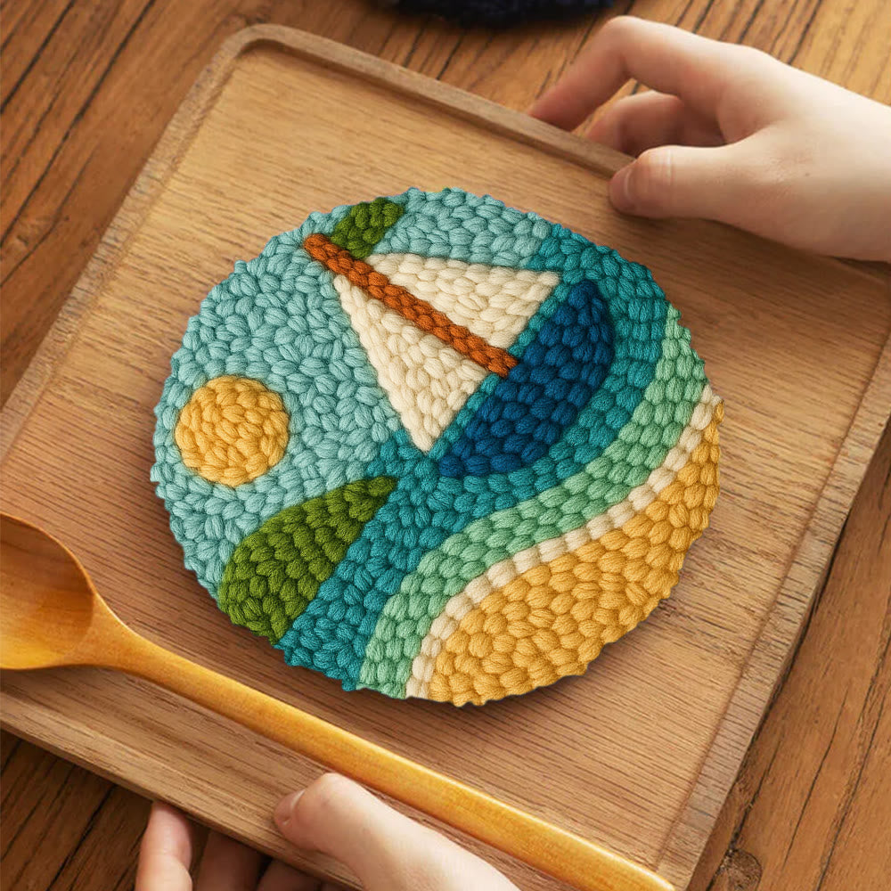 Coastal Sailboat Scene Punch Needle Kit – Novice-ready Handcraft | Charming Decor Accent