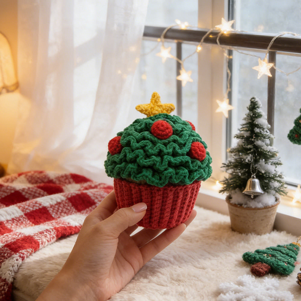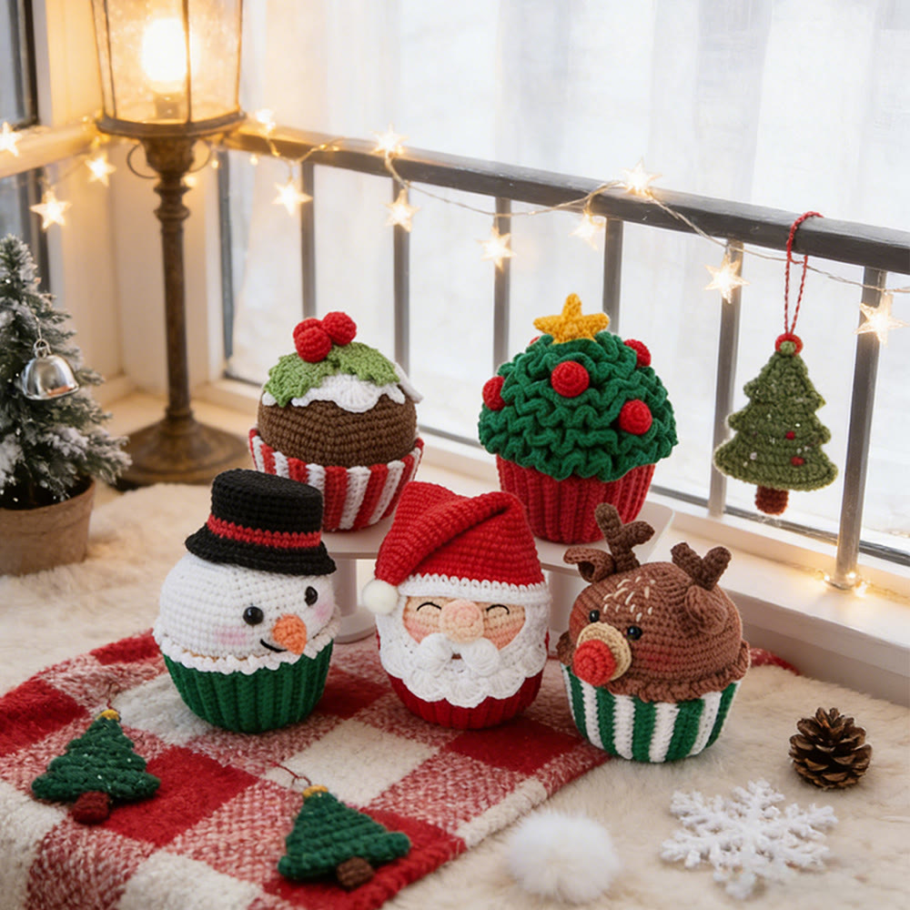 Diy Handmade Christmas Cupcakes Crochet Kit - Creative Christmas Toy | Handmade Crocheted Gift