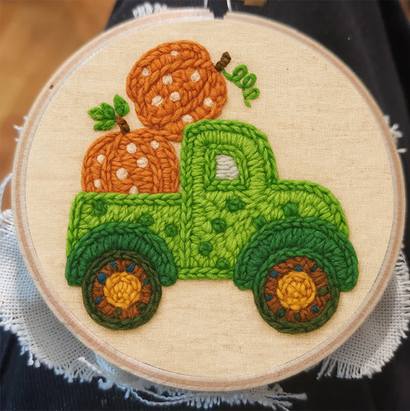 Pumpkins Truck Punch Needle Kit - Thanksgiving Handmade Craft | Diy Halloween Decor