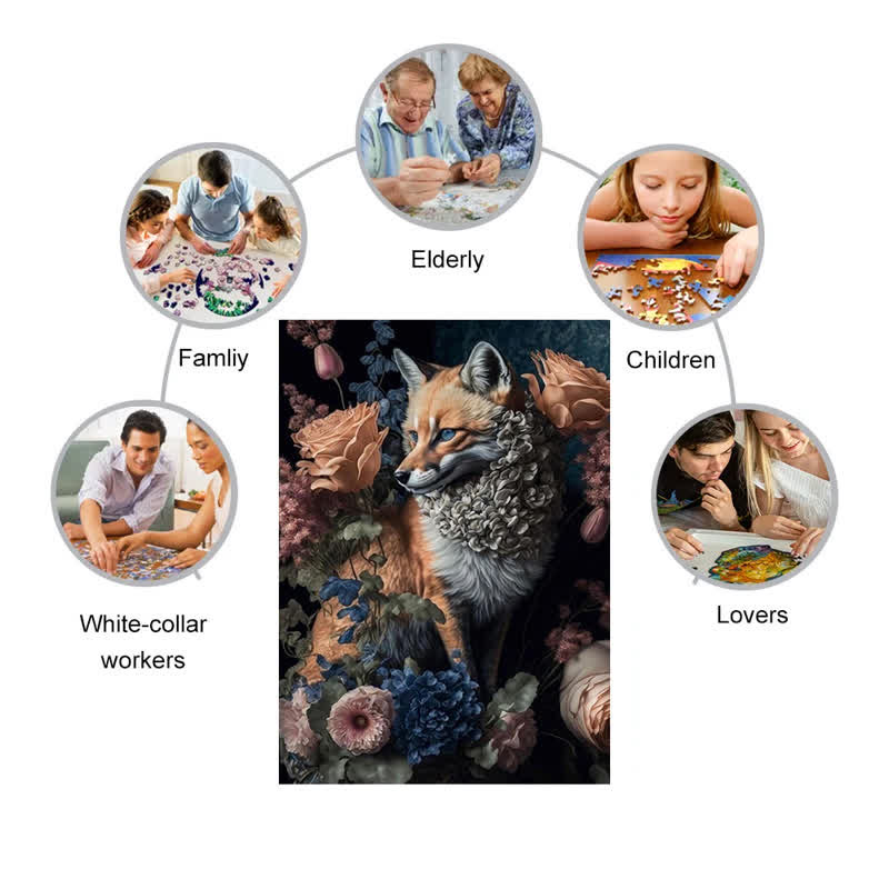 Red Fox WIth Flower - Wooden Jigsaw Puzzle