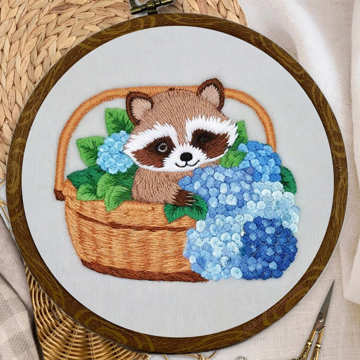 Rubbyoo Embroidery Kit-cute Raccoon In Basket Diy Craft Kits | For Craft Lover