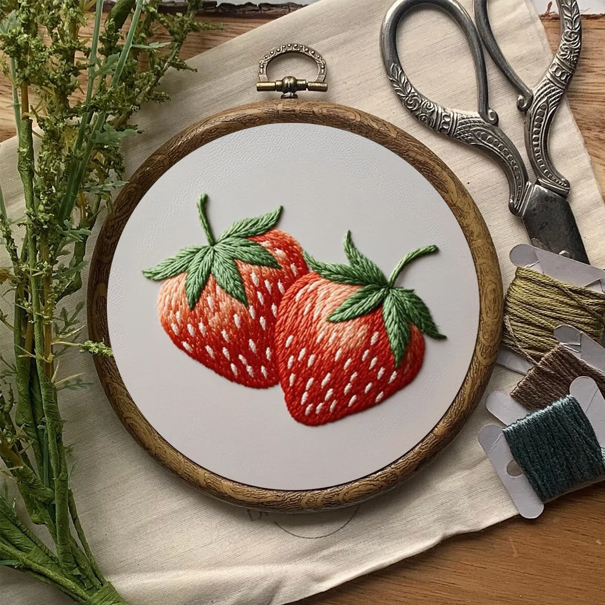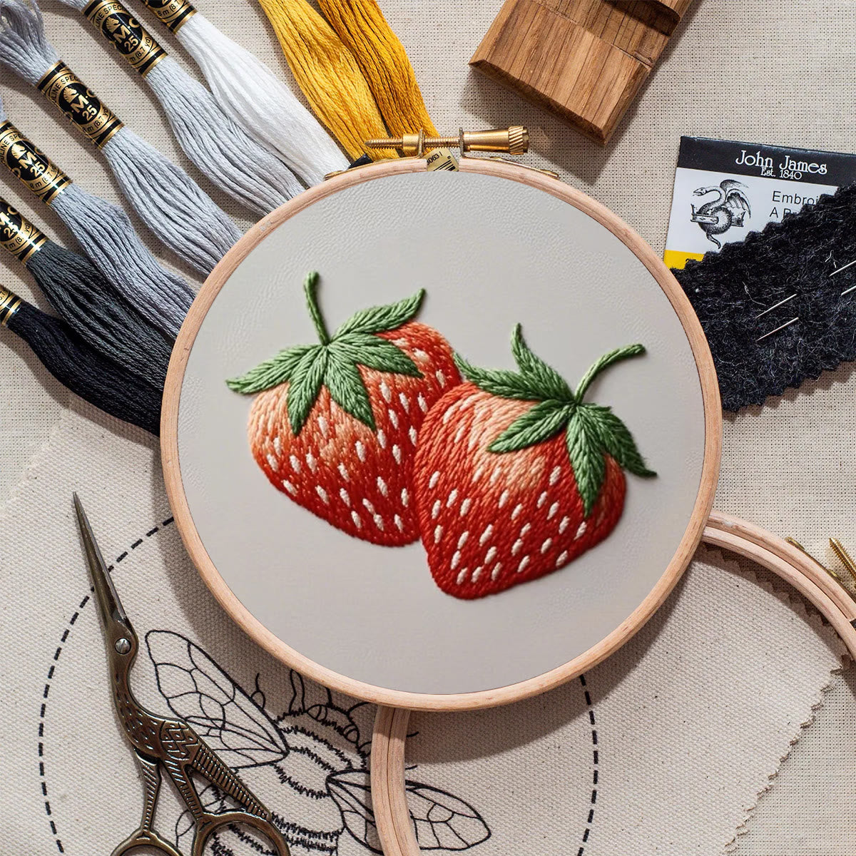 Rubbyoo Embroidery Kit- Two Big Strawberries | For Beginners DIY Craft Kits