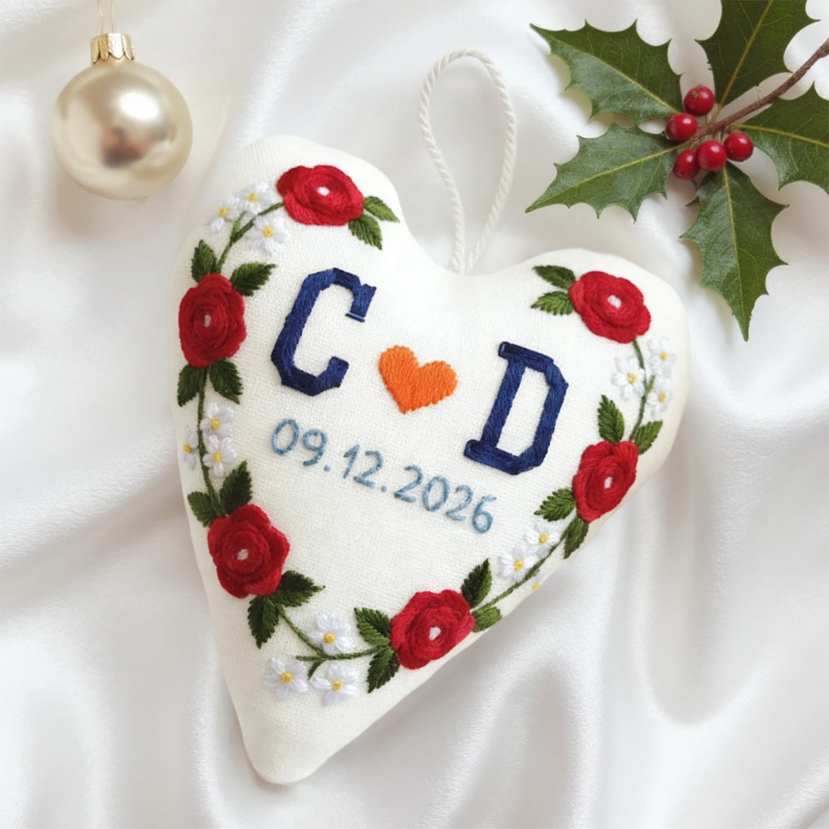 Rubbyoo Heart Embroidery Kit - Initials Red Rose Orange Heart | Custom Decor Piece | Entry-level Embroidery