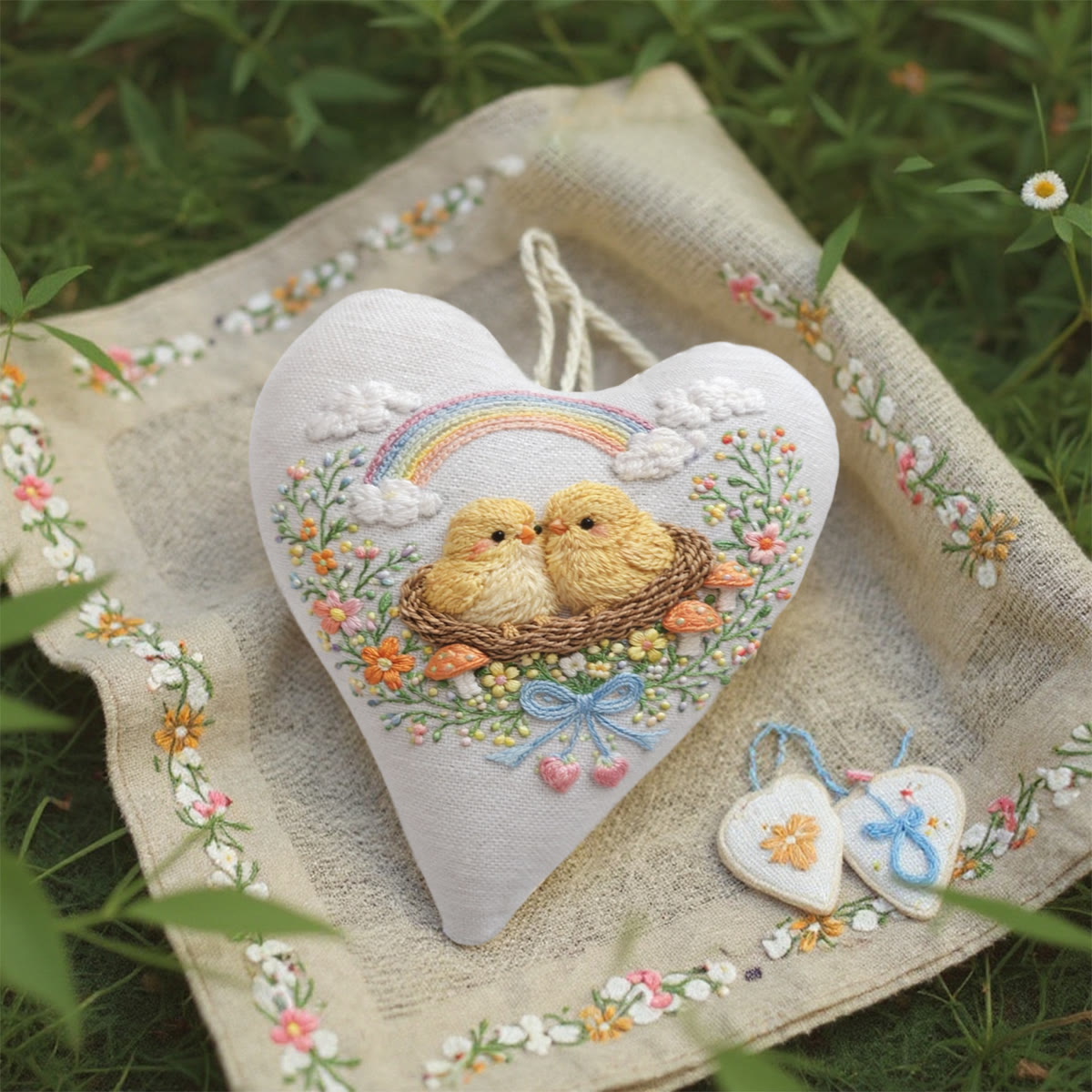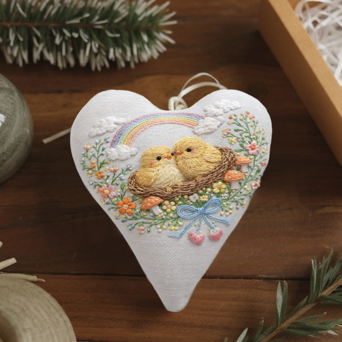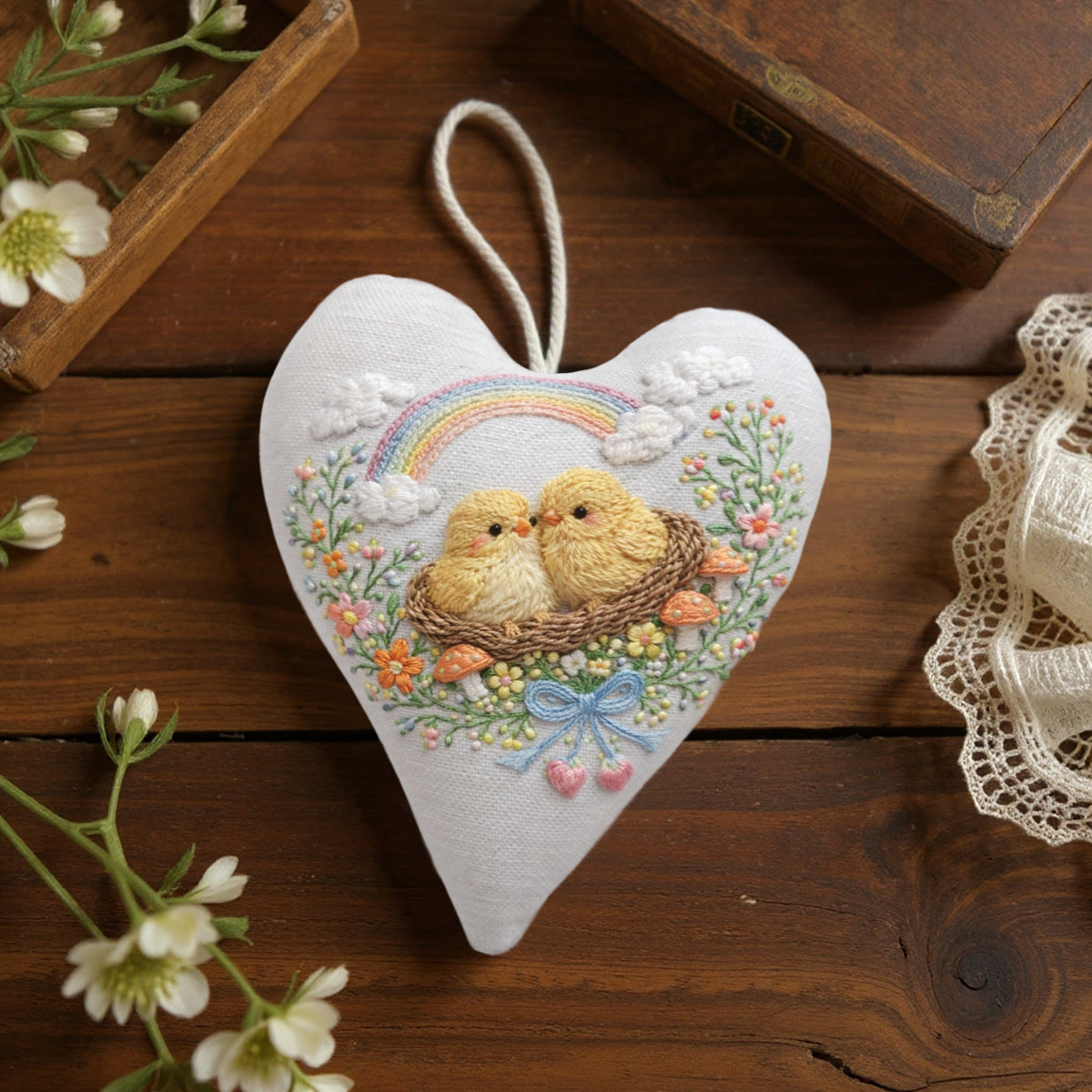 Rubbyoo Heart Embroidery Kit - Rainbow Nest Chicks | Exquisite Embroidery Craft | Top Gifting Pick