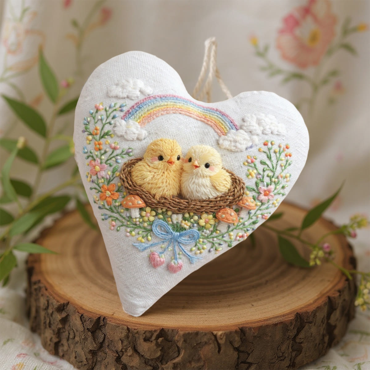 Rubbyoo Heart Embroidery Kit - Rainbow Nest Chicks Mushrooms | Refined Handcrafted Stitchwork | Premier Gifting Choice