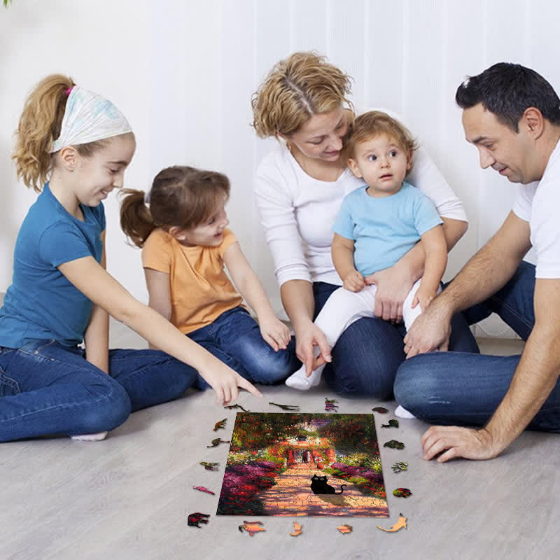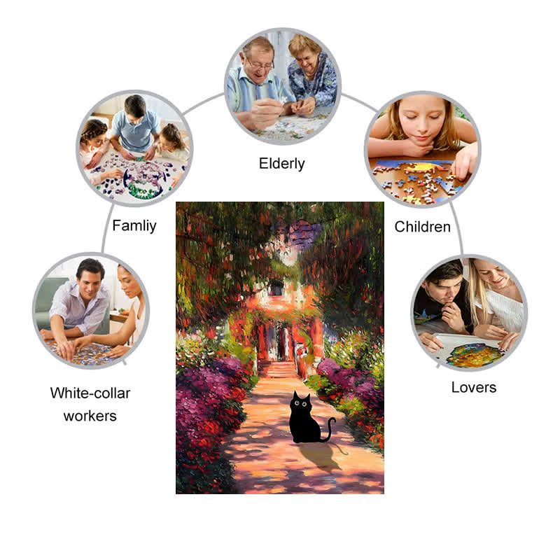 Rubbyoo Monet Garden Cat - Wooden Jigsaw Puzzle