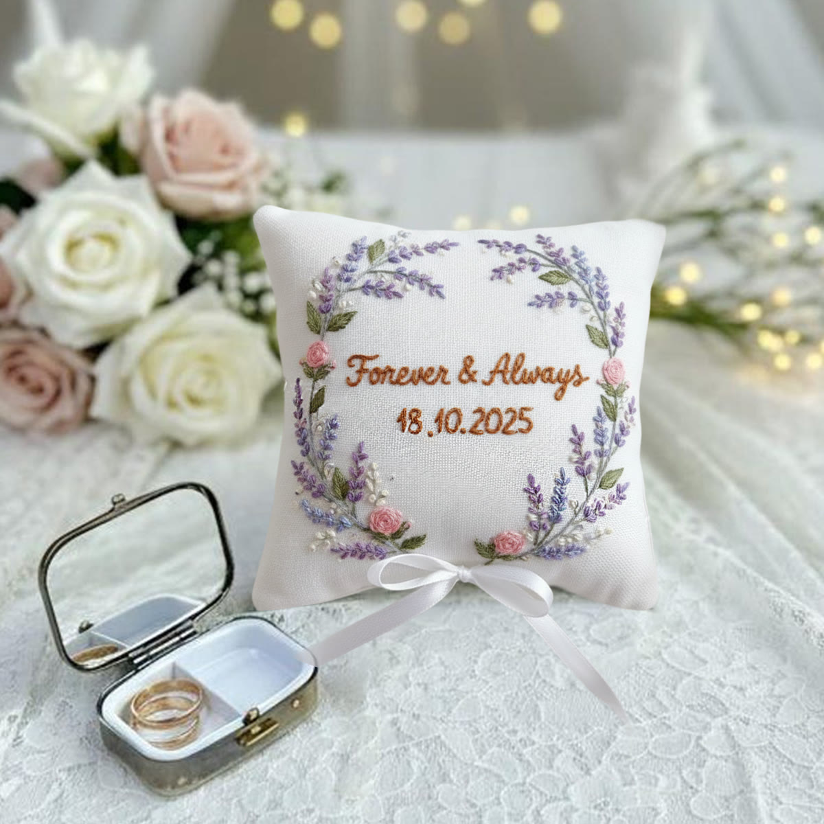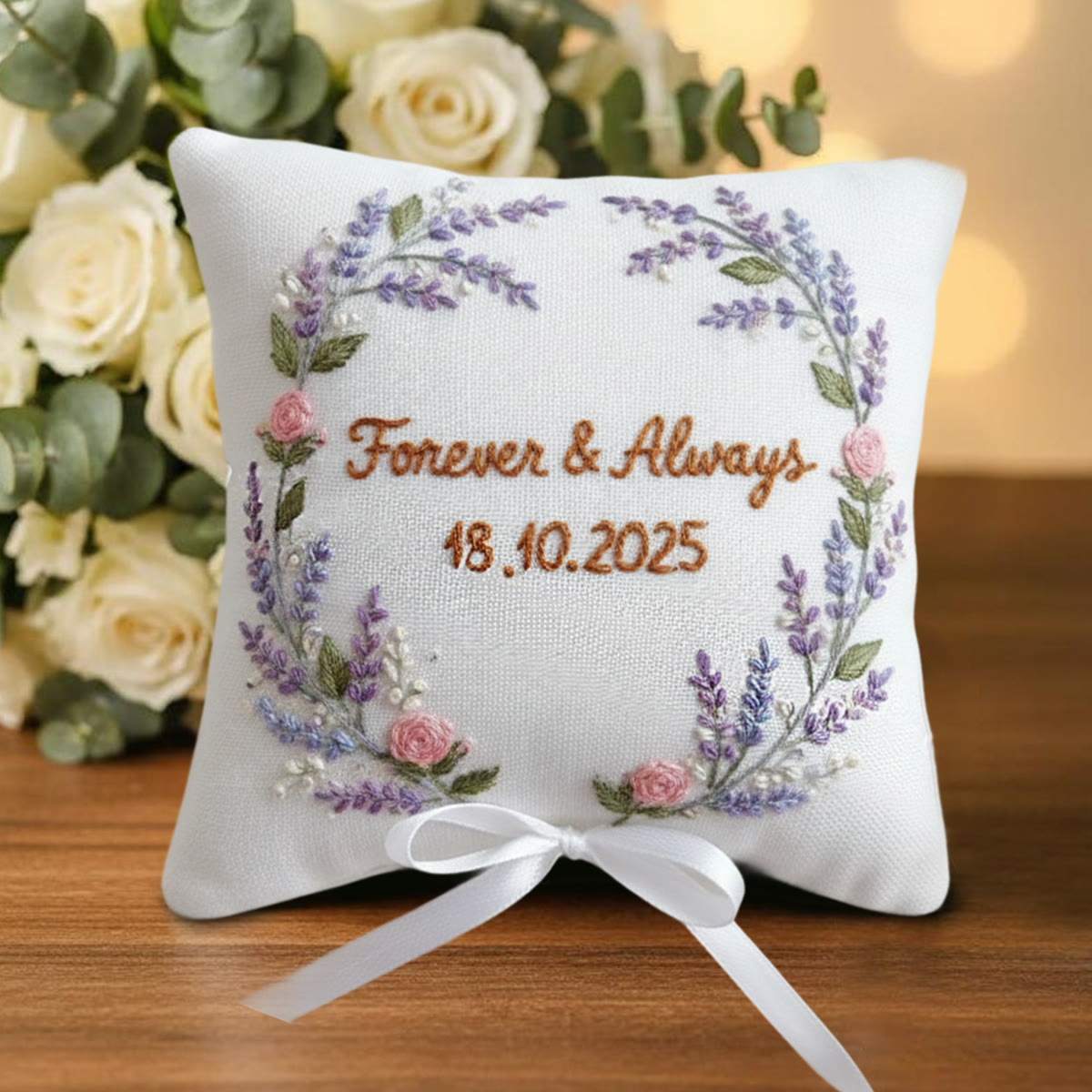 Rubbyoo Personalized Ring Bearer Pillow Embroidery Kit - Lavender Wreath | Holding Wedding Rings | Weddings Ceremony