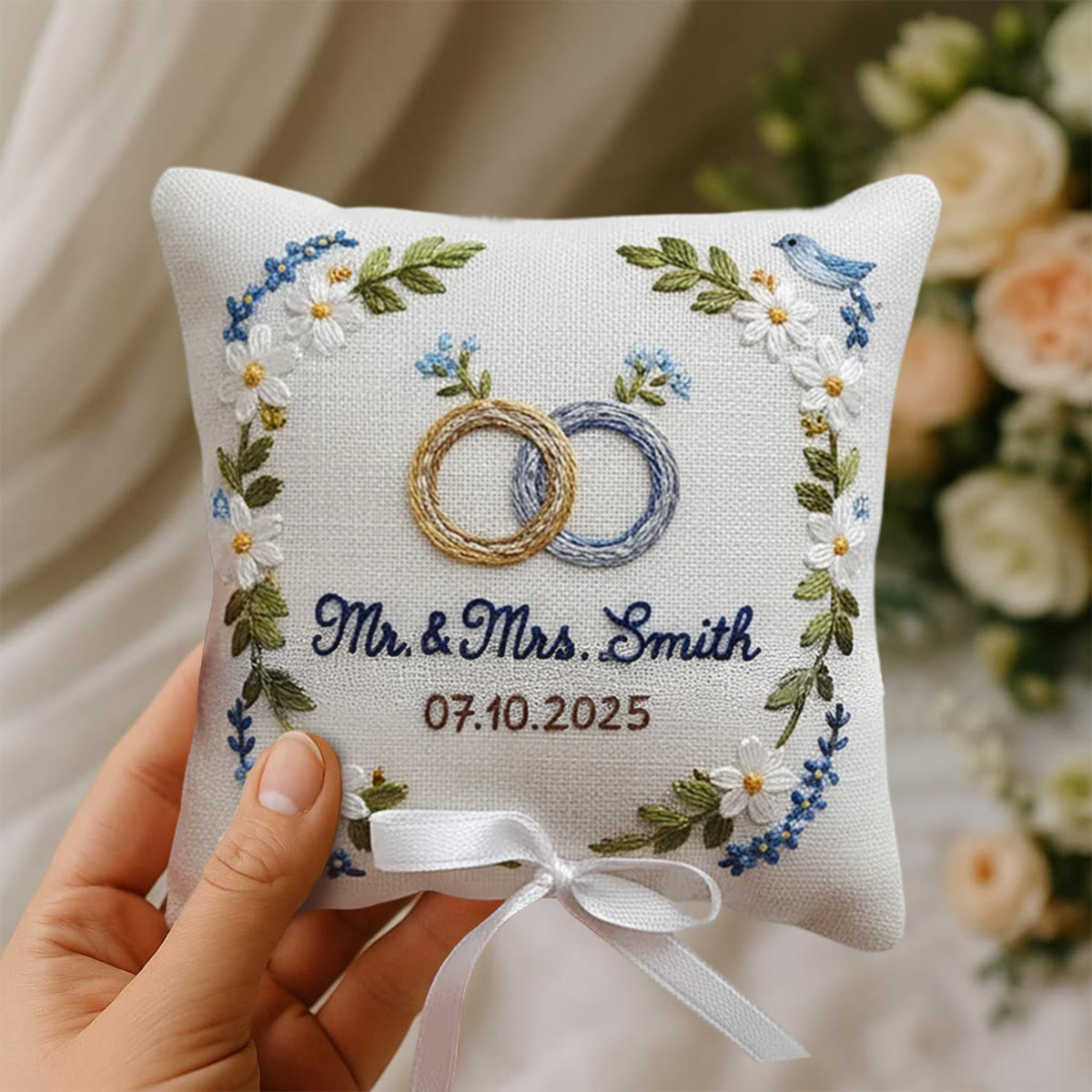 Rubbyoo Personalized Ring Bearer Pillow Embroidery Kit - White Daisy And Blue Flower Wreath | Beginner Diy | Weddings Anniversaries