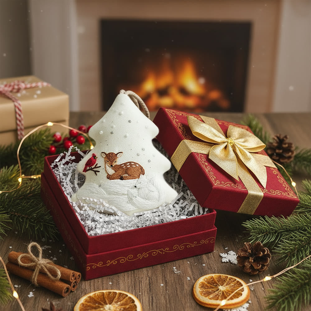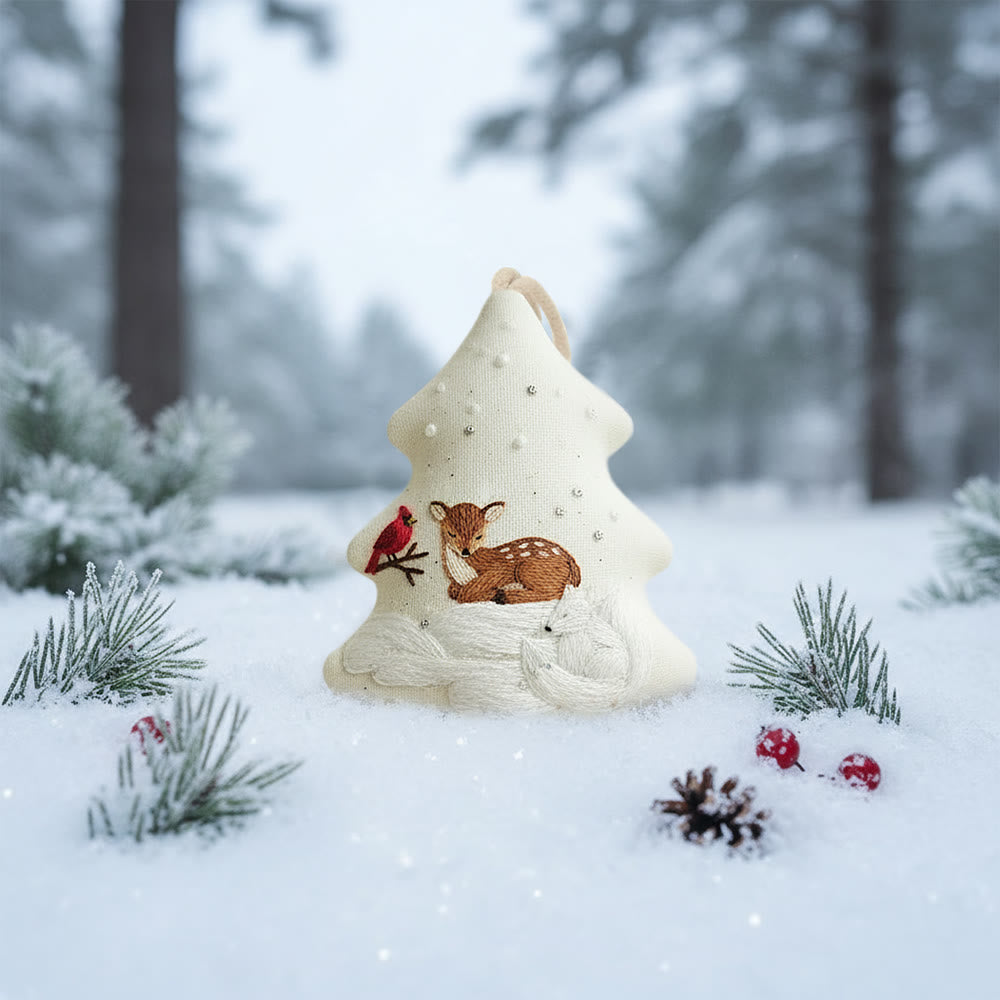 Rubbyoo Tree-shaped Embroidery Kit - Deer And Cardinal Winter | Luxe Detailed Stitchwork | Festive Tree Keepsake