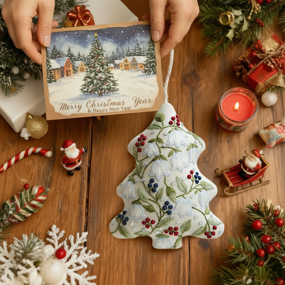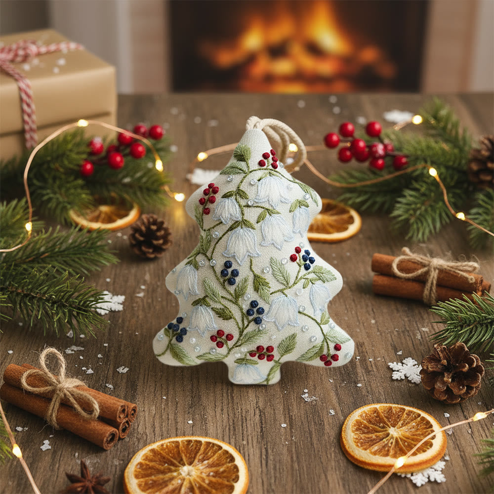 Rubbyoo Tree-shaped Embroidery Kit - Lily of the Valley-Berry | Fine Intricate Stitching | Elegant Holiday Dangle