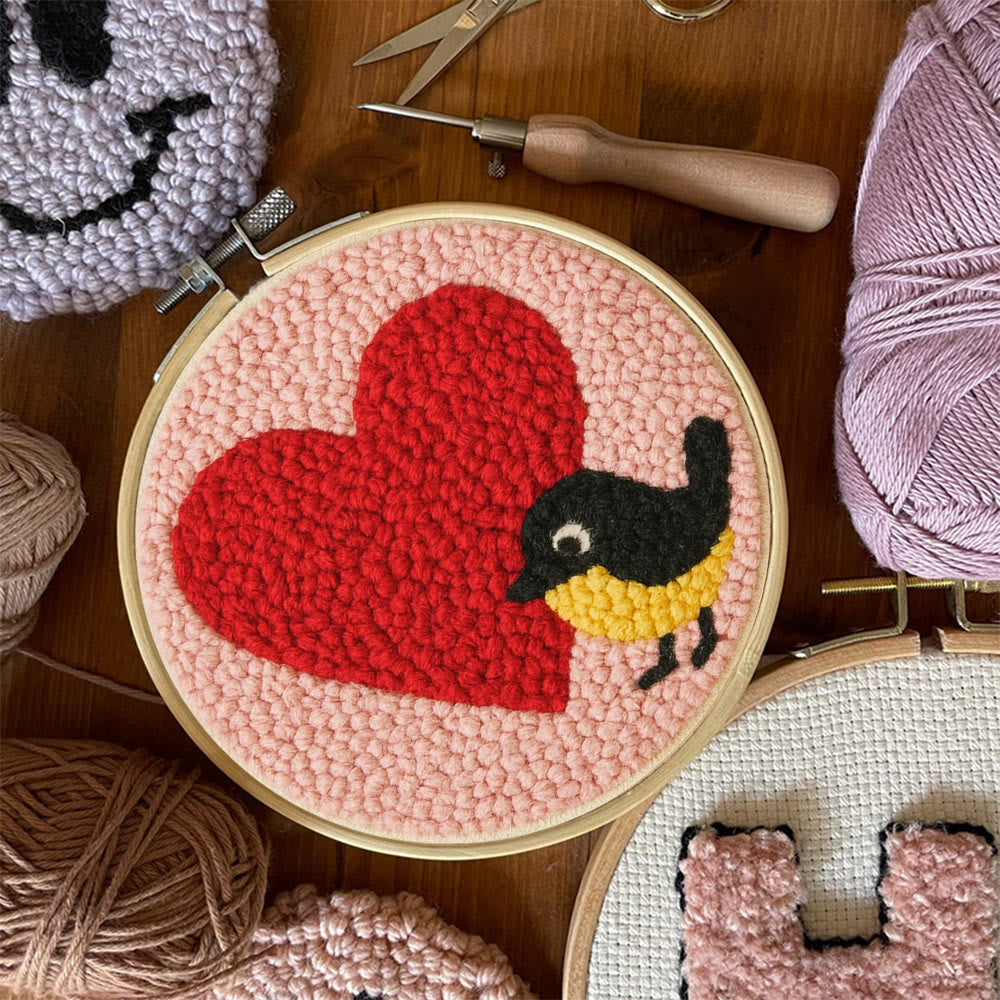 Vibrant Plush Heart Bird Punch Needle Kit – Newbie-friendly Craft | Top Gifting Pick