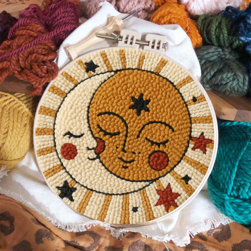 Whimsical Sun Moon Face Punch Needle Kit – Beginner-friendly Handcraft | Creative Decor Hanger