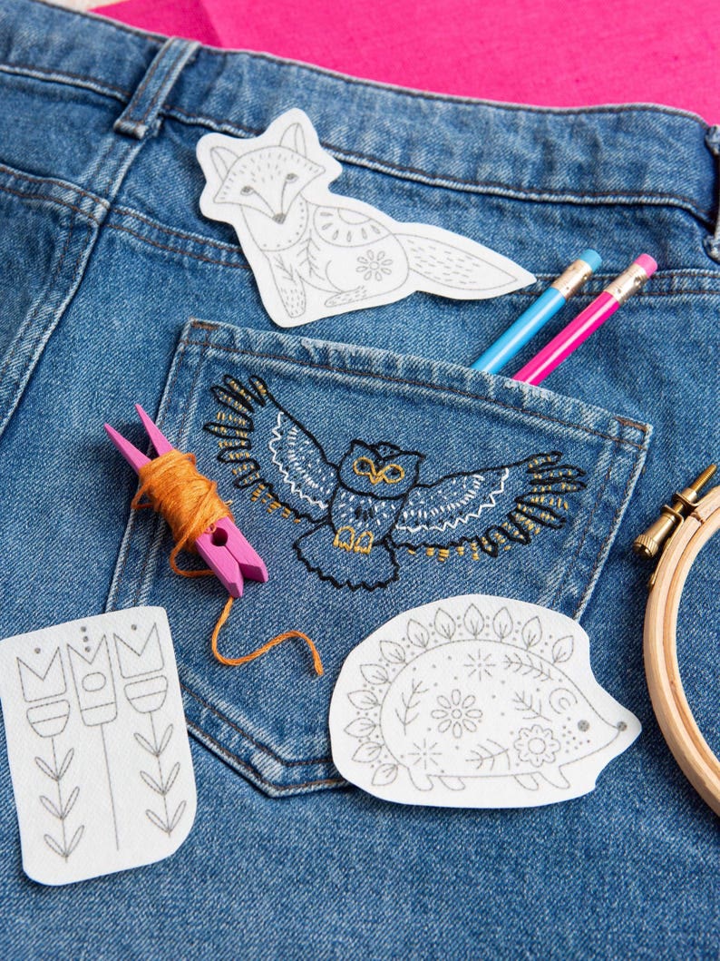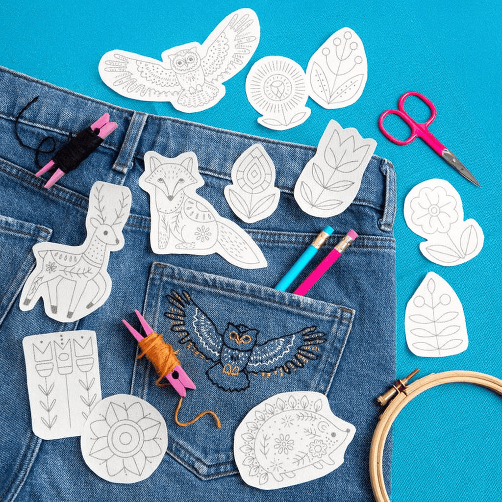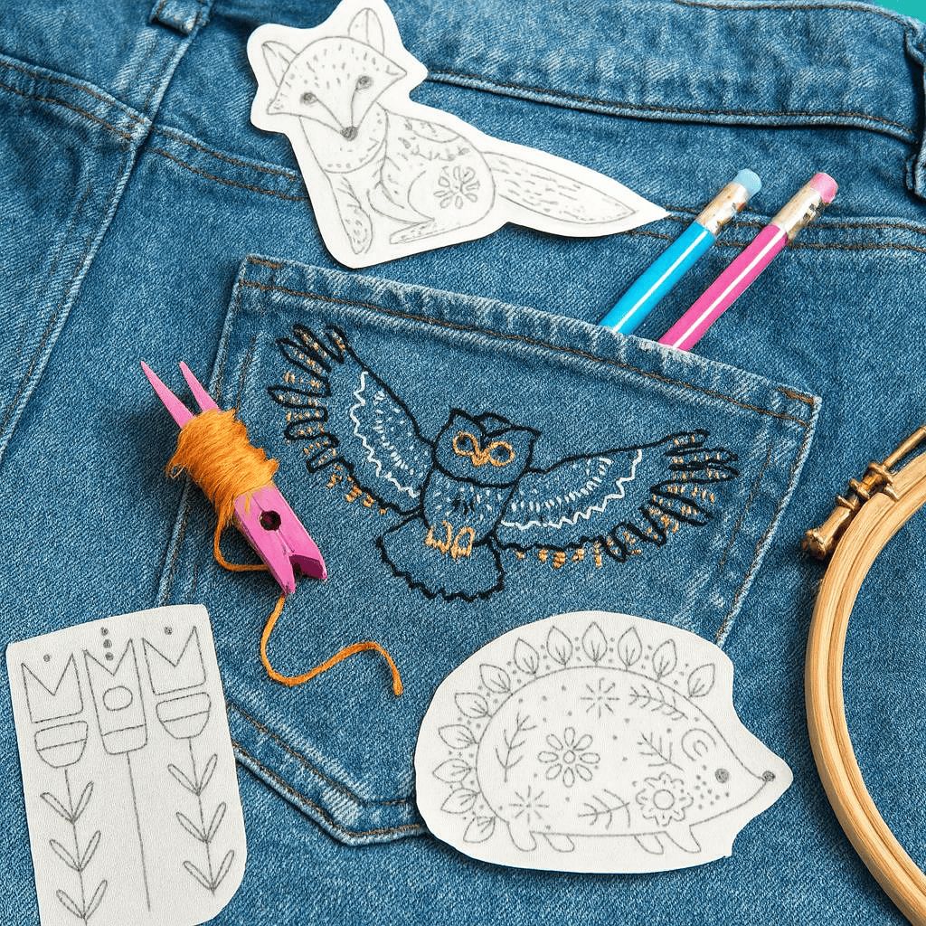 🧶The designs come pre-printed on washable adhesive backing paper. Simply peel off the backing, apply to fabric, and let your embroidery creativity run wild!